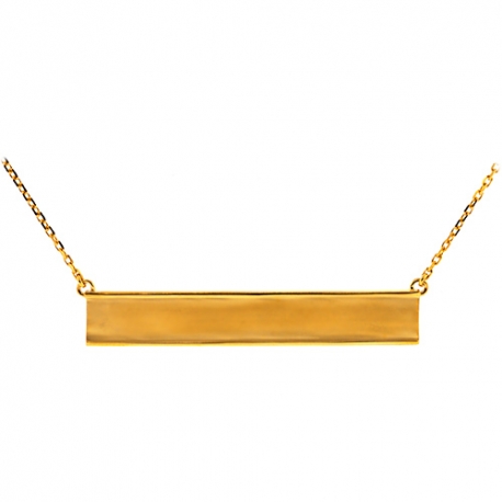 Engrave our women's gold necklace with your name, the name of a loved one, or a word that brings inspiration! Expertly made of luxurious 18k yellow gold, the bar has beautiful matte finish that suspends from a cable chain. The total length of yellow gold necklace is 18 inches that is secured with a safe lobster claw clasp. The engravable plate measures 50 x 8 mm. This gold ID necklace is ideal for yourself or as a gift!