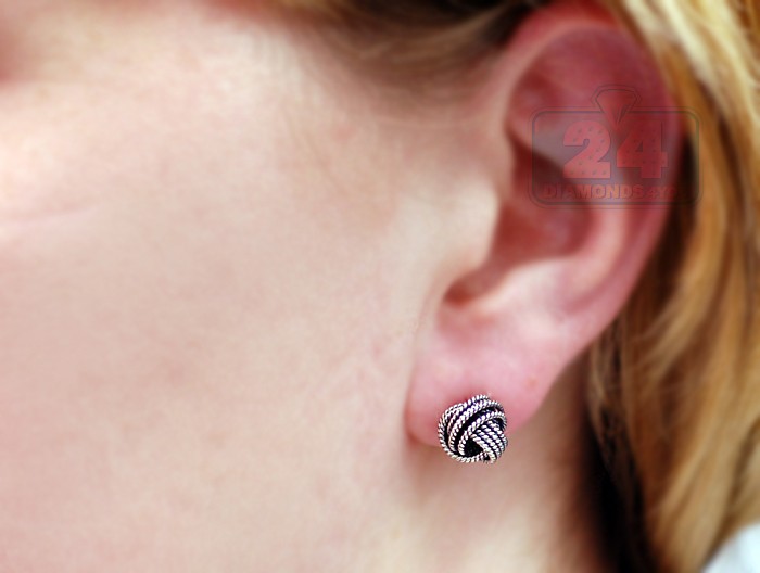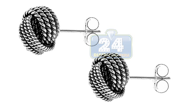 Oxidized 925 Sterling Silver Womens Knot Stud Earrings
