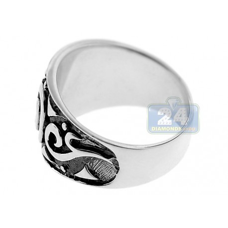 925 Oxidized Sterling Silver Vintage Pattern Womens Ring