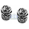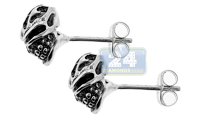 Oxidized 925 Sterling Silver Vintage Skull Womens Stud Earrings