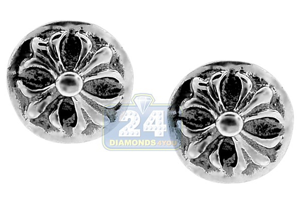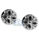 Oxidized 925 Sterling Silver Fleur De Lis Womens Stud Earrings