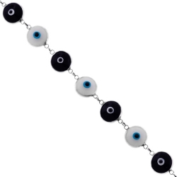Our wrist bracelet is an everyday piece that has timeless design! Featured black and white evil eye beads, it is crafted in 925 sterling silver, and covered with white rhodium for bright white color. It has length of 7.5 inches, width of 10 mm, and user-friendly lobster claw closure. This lady's silver bracelet is sure to make great impression!