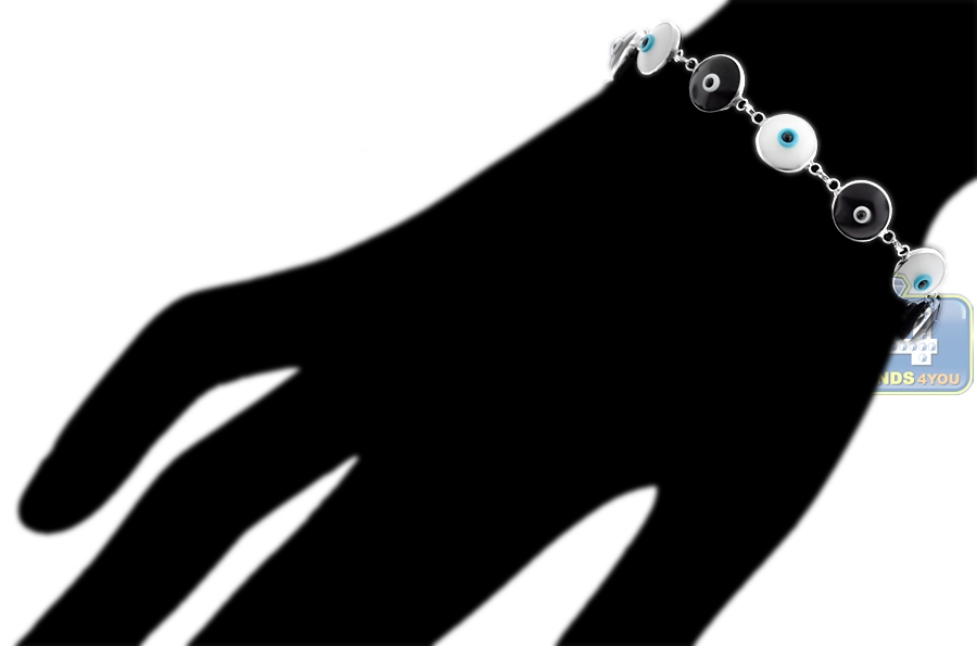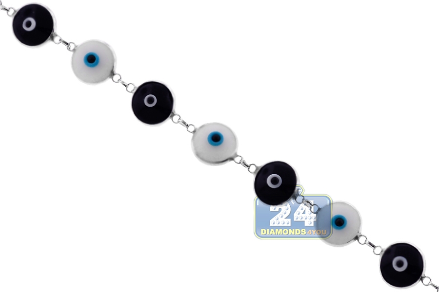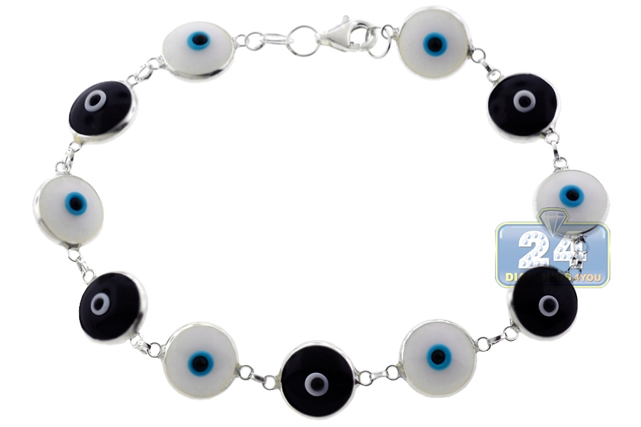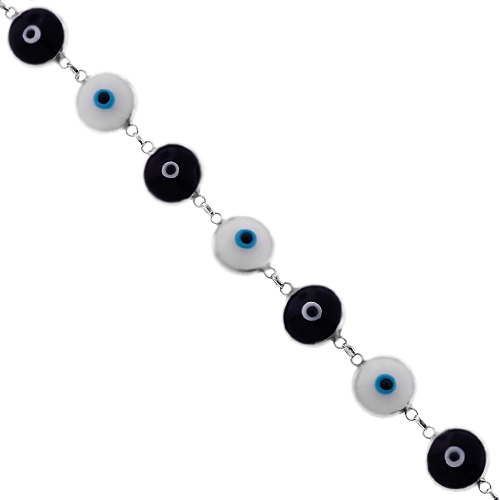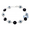 925 Silver Black White Evil Eye Womens Bracelet 10 mm 7 1/2 inches