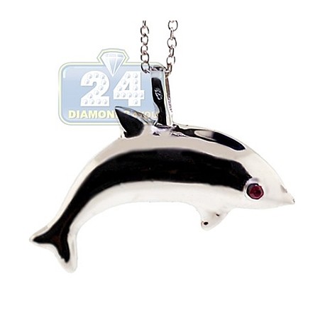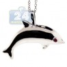 925 Sterling Silver 0.06 ct Ruby Dolphin Pendant Womens Necklace