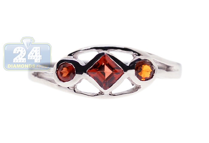 925 Sterling Silver 0.34 ct Garnet Gemstone Womens Ring