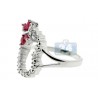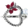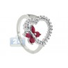 925 Sterling Silver 0.49 ct Ruby Diamond Open Heart Butterfly Ring
