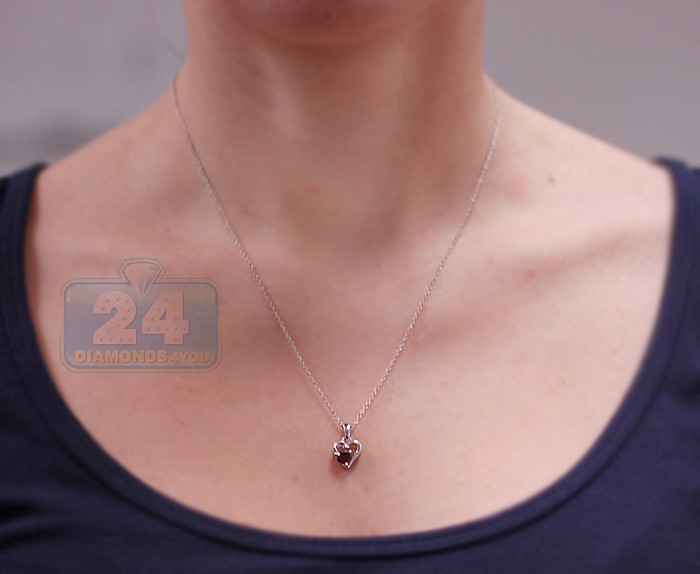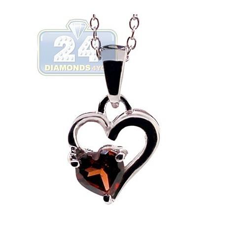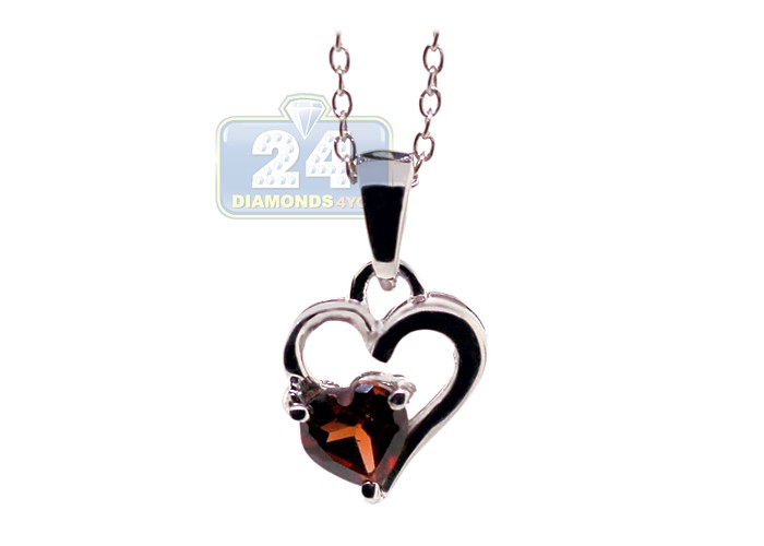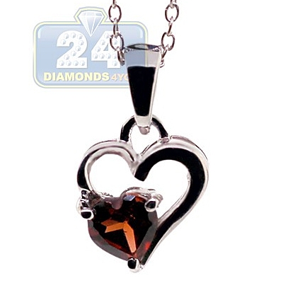 925 Sterling Silver 0.50 ct Garnet Heart Pendant Womens Necklace