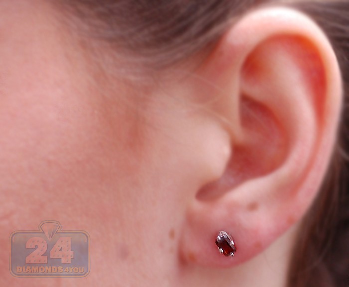 925 Sterling Silver 0.88 ct Garnet Womens Stud Earrings