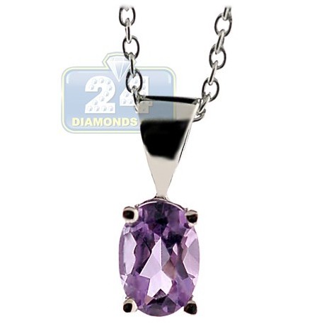 925 Sterling Silver 1.00 ct Amethyst Drop Pendant Womens Necklace