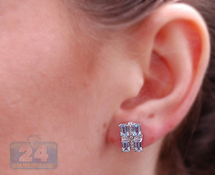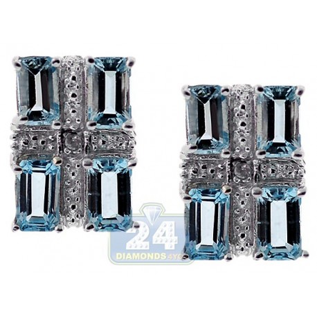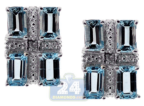 Add a fresh touch to your outfit with these adorable 925 sterling silver stud earrings. Design of these cute earrings features a rectangular-shaped setting accented with 4 heavenly blue topaz gemstones of emerald cut. These shimmering stud earrings will be a perfect addition to your look for any occasions.