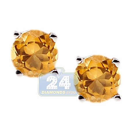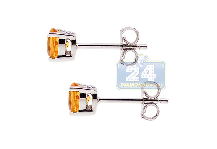 925 Sterling Silver 1.00 ct Citrine Womens Stud Earrings