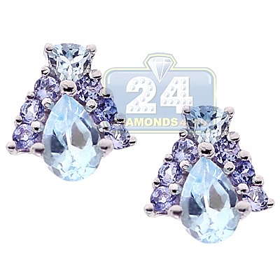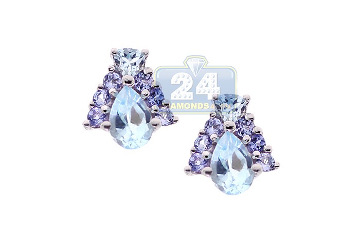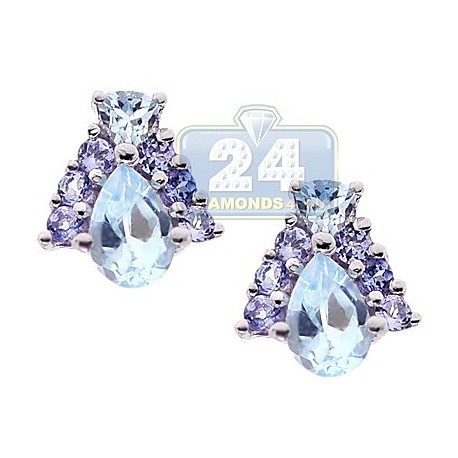 Add a fresh touch to your outfit with these adorable 925 sterling silver stud earrings. Design of these cute earrings features a combination of topaz & tanzanite gemstones. These shimmering stud earrings will be a perfect addition to your look for any occasions.