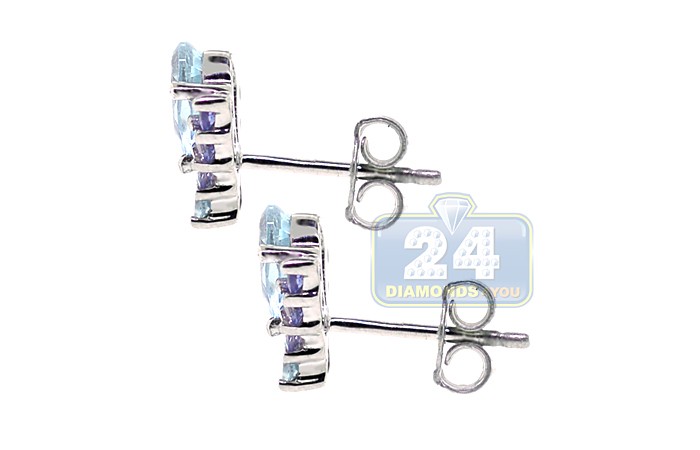 925 Sterling Silver 1.62 ct Topaz Tanzanite Womens Stud Earrings