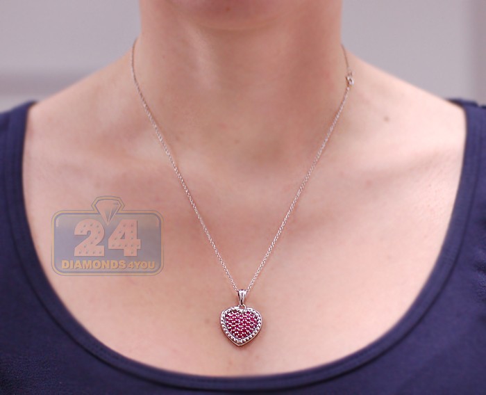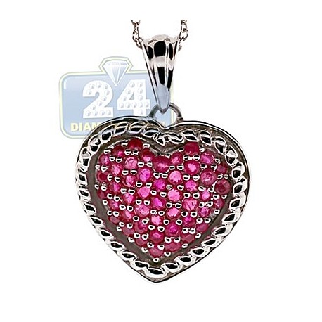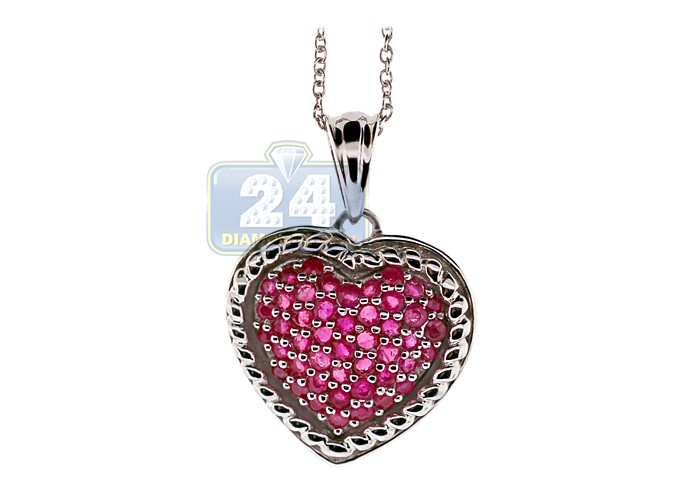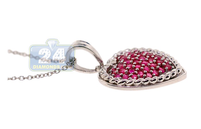 925 Sterling Silver 1.74 ct Ruby Heart Pendant Womens Necklace