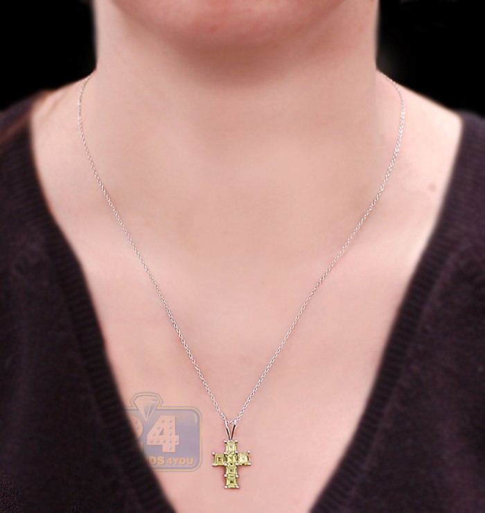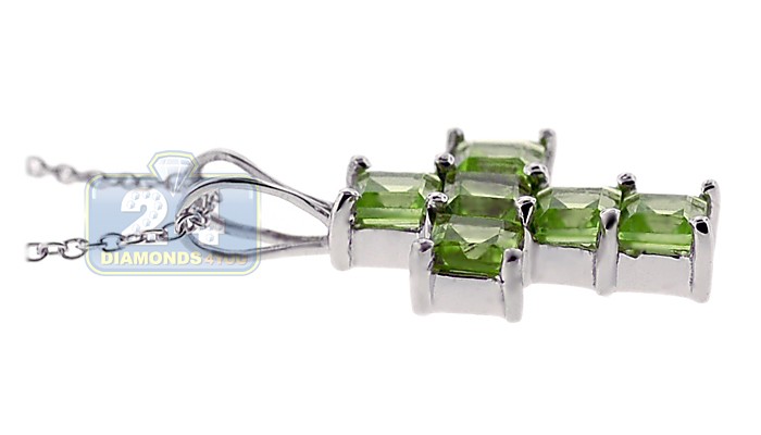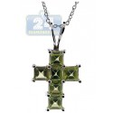 925 Sterling Silver 2.40 ct Peridot Cross Pendant Womens Necklace
