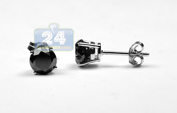 We are pleased to present this lovely pair of women's classic diamond stud earrings! It features two solitaire natural black round cut diamonds that are perfectly matching with each other, a shiny polished four-prong setting expertly handmade of 925 sterling silver, and heavy-duty push backs as a secure closure. Simple and elegant piece of jewelry that will be a great addition to your formal or casual outfit!