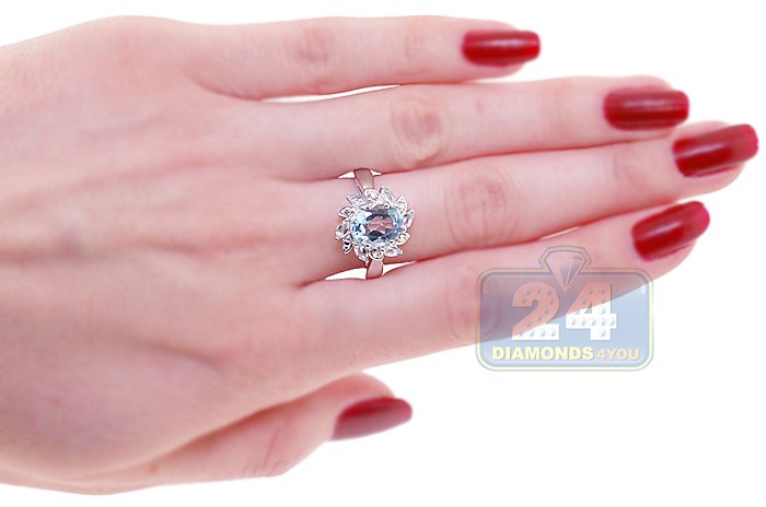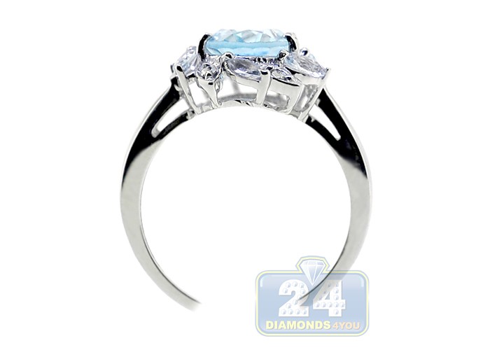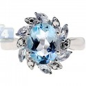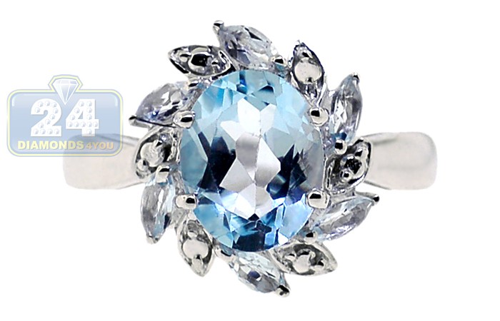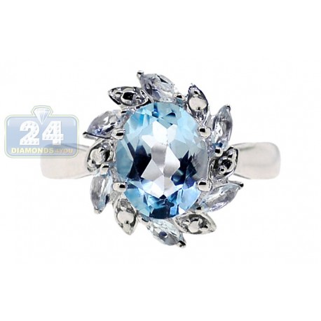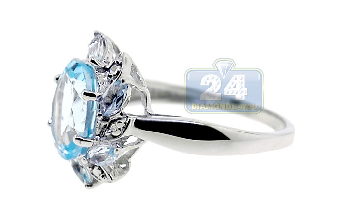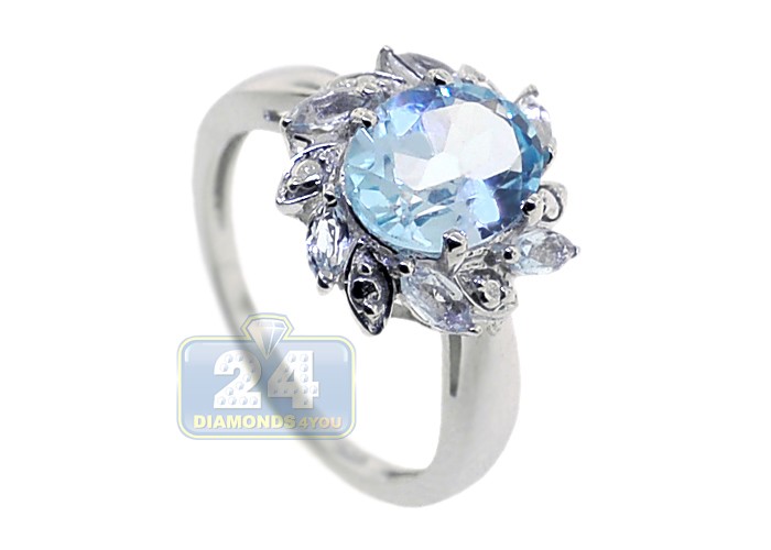 925 Sterling Silver 2.68 ct Blue Topaz Womens Flower Ring