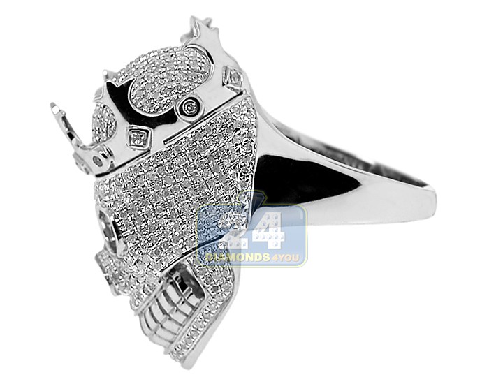 925 Sterling Silver 2.75 ct White Diamond Mens Skull Ring