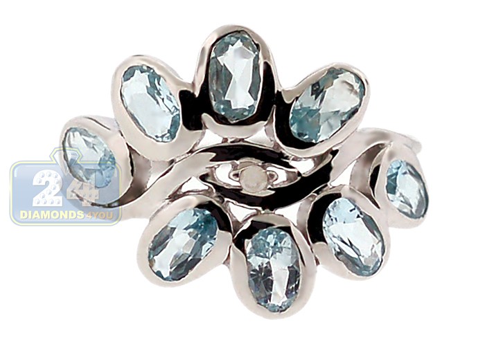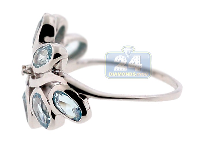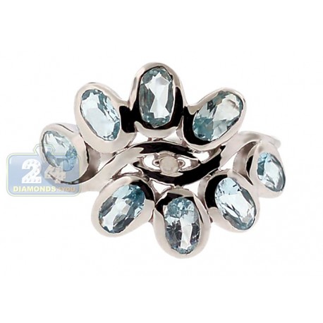 925 Sterling Silver 2.80 ct Blue Topaz Flower Womens Ring