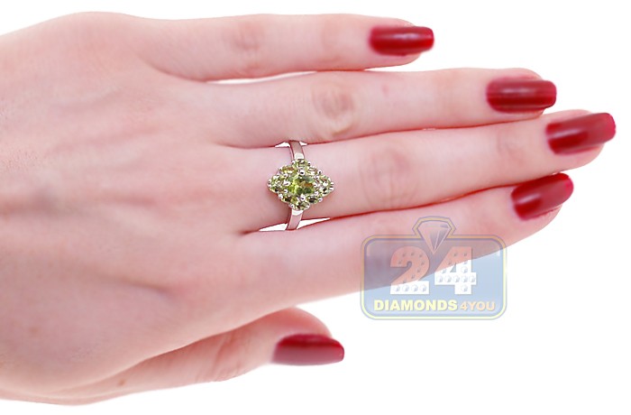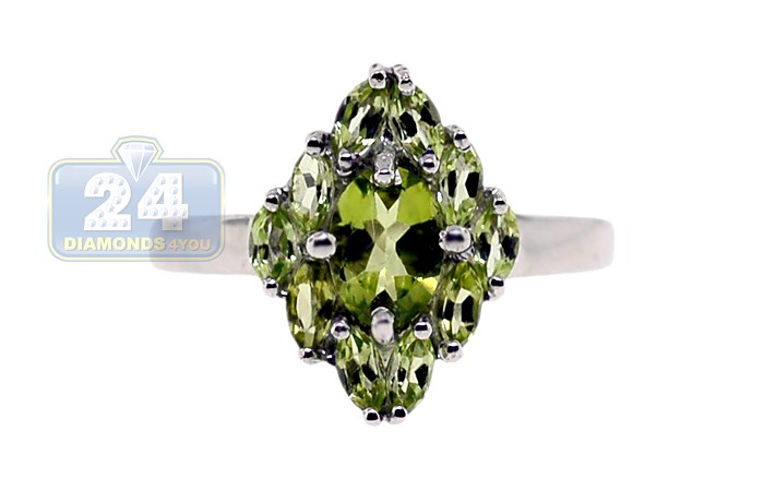 925 Sterling Silver 2.95 ct Green Peridot Womens Cluster Ring