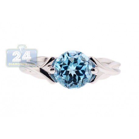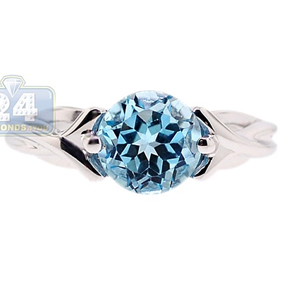Our delicate ring features heavenly blue topaz round stone weighting approximately 3.00 carat skillfully handset using two prongs in the center. Cool 925 sterling silver with highly polished shiny finish setting of the ring showcases a vintage inspired intricate woven design. No doubt, this cute ring is a must have accessory for special occasions or every day wear!
