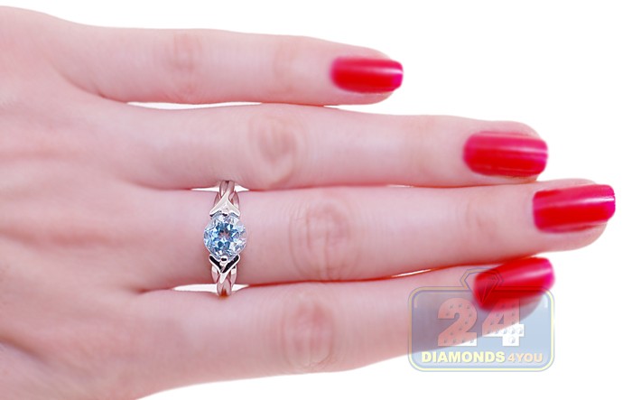 925 Sterling Silver 3 ct Blue Topaz Solitaire Womens Woven Ring