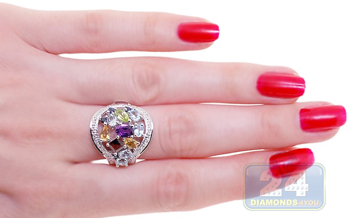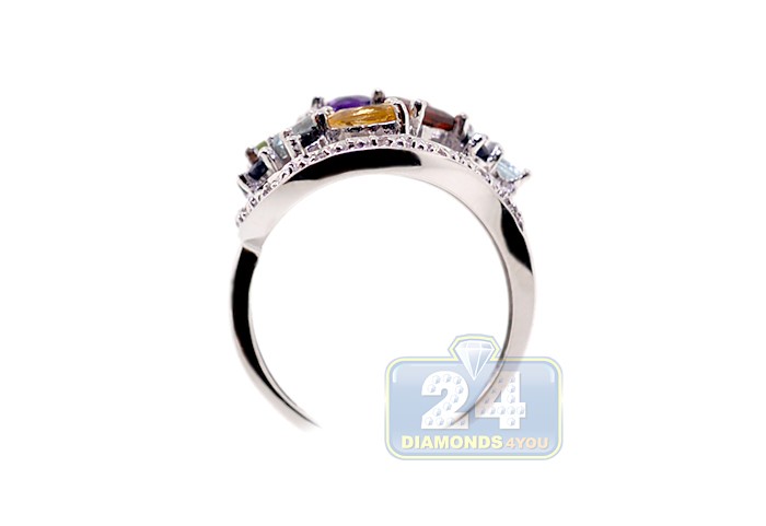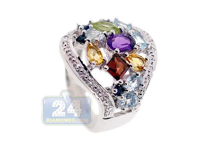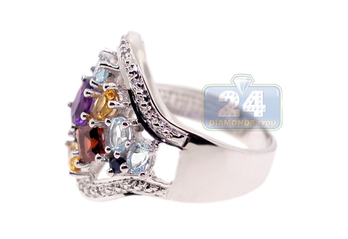 925 Sterling Silver 3.29 ct Multi Colored Gemstone Womens Ring
