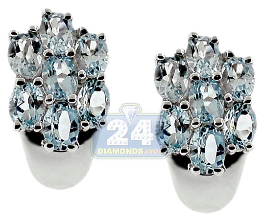 925 Sterling Silver 3.50 ct Blue Topaz Womens Stud Earrings