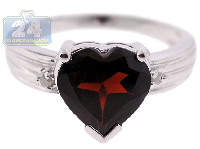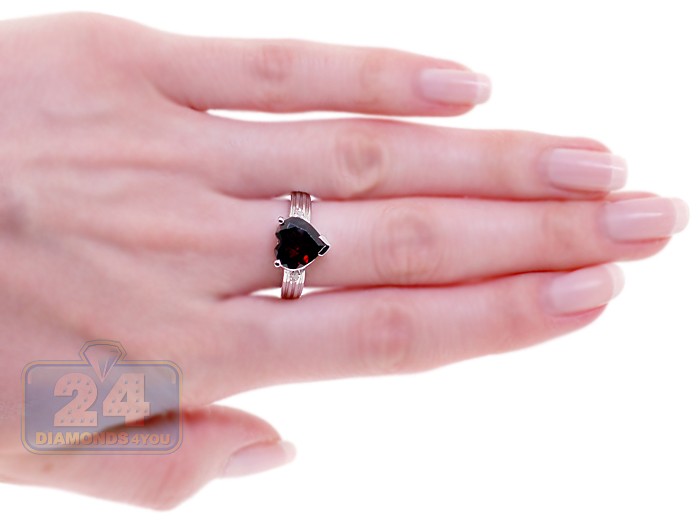 925 Sterling Silver 3.53 ct Garnet Heart Solitaire Womens Ring