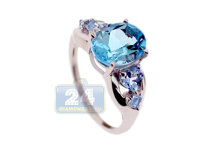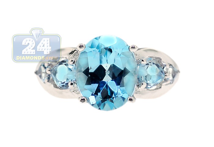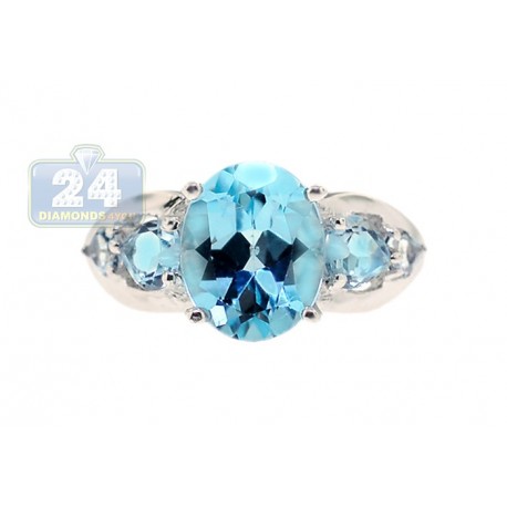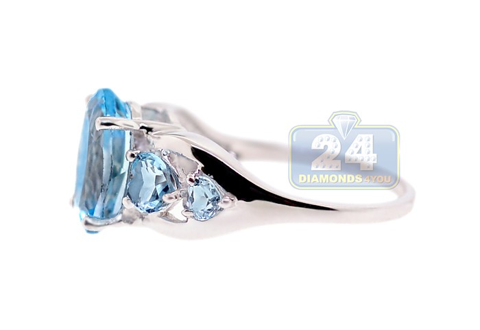 925 Sterling Silver 4.31 ct Blue Topaz Multi Stone Womens Ring
