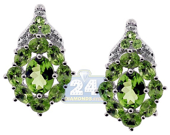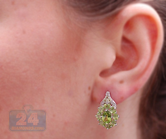 925 Sterling Silver 5.90 ct Peridot Cluster Womens Stud Earrings
