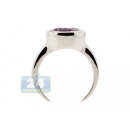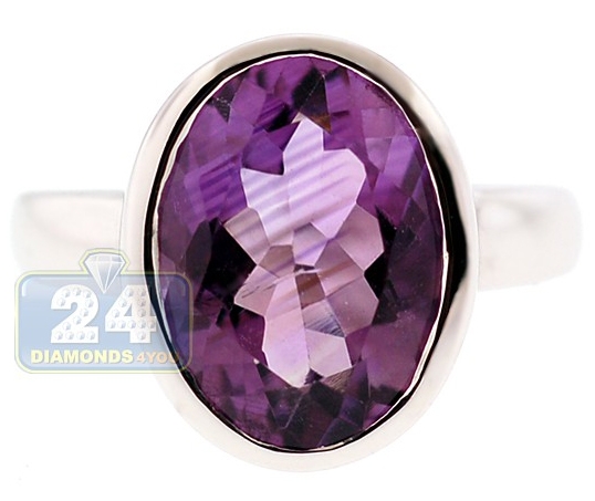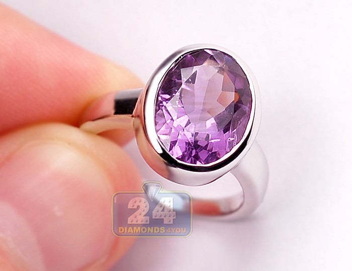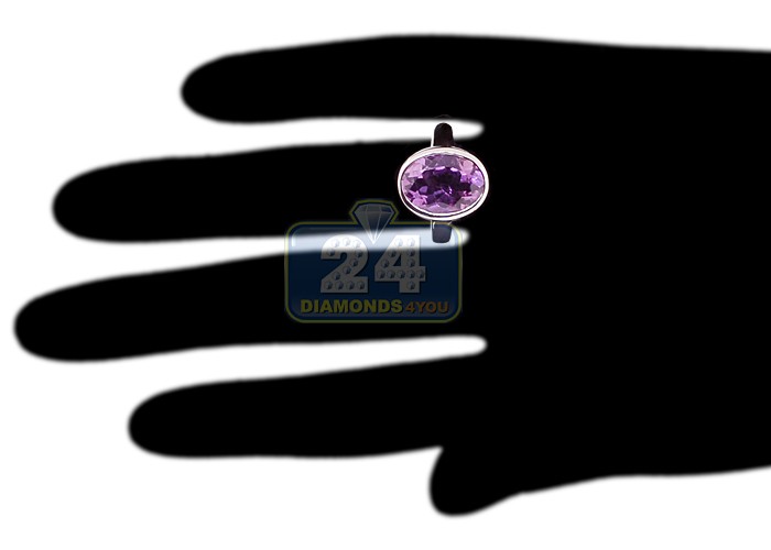 Enjoy such an elegant yet playful gemstone ring! It showcases a natural purple oval cut amethyst of Brazilian origin that is masterly bezel set in the center making this jewelry piece a really chic accessory! The setting of the ring is expertly produced in cool 925 sterling silver with highly polished shiny finish. Add this fascinating solitaire ring to your daily style!