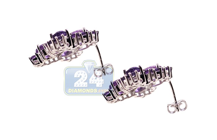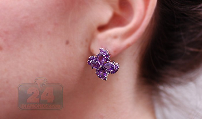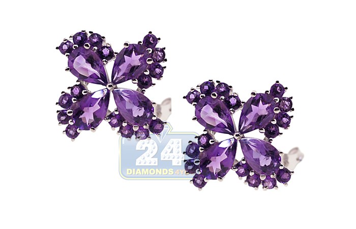 Feel of summer all year round with these stunning amethyst flowers! Gorgeous design of these earrings features deep colored amethyst gemstones set in a flower shaped setting. Unforgettable gift for your beloved one!