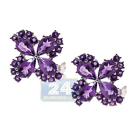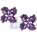 925 Sterling Silver 9.80 ct Amethyst Womens Flower Stud Earrings