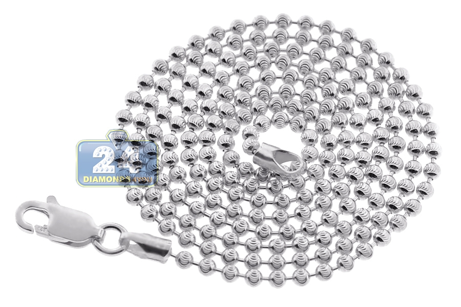 925 Sterling Silver Army Moon Cut Bead Unisex Chain 2 mm