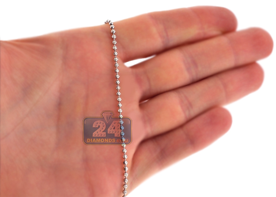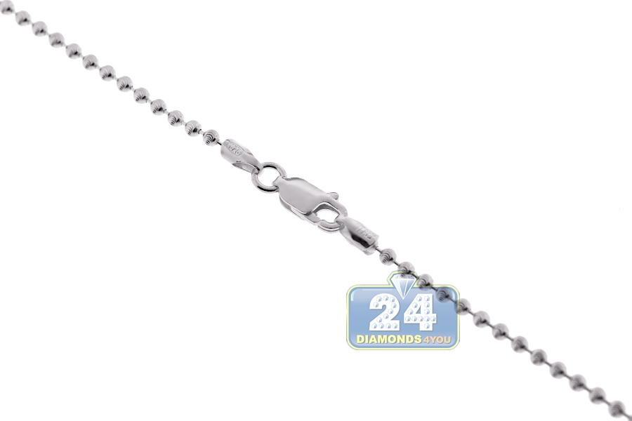 Our moon cut bead chain is lovely alone or paired with your favorite pendant! It is masterly produced from 925 sterling silver, and covered with white rhodium that helps prevent tarnishing and gives a bright color. The necklace measures 2 mm in width, 18-36 inches in length; and also secures with a safe lobster claw clasp. This bright army moon cut chain can be worn anytime, anywhere!
