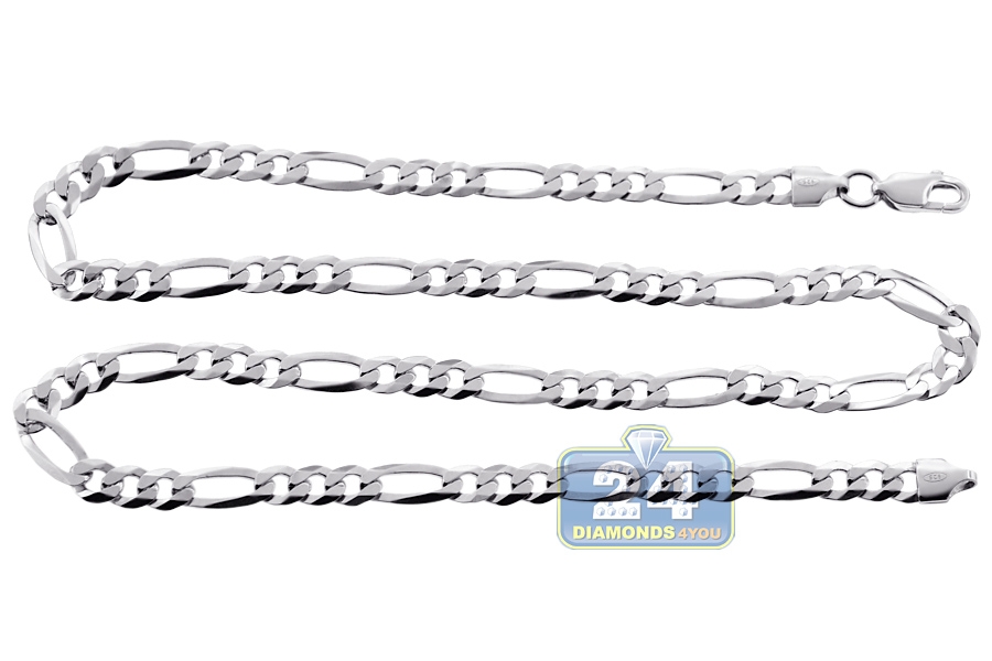 925 Sterling Silver Figaro Solid Link Mens Chain 6 mm