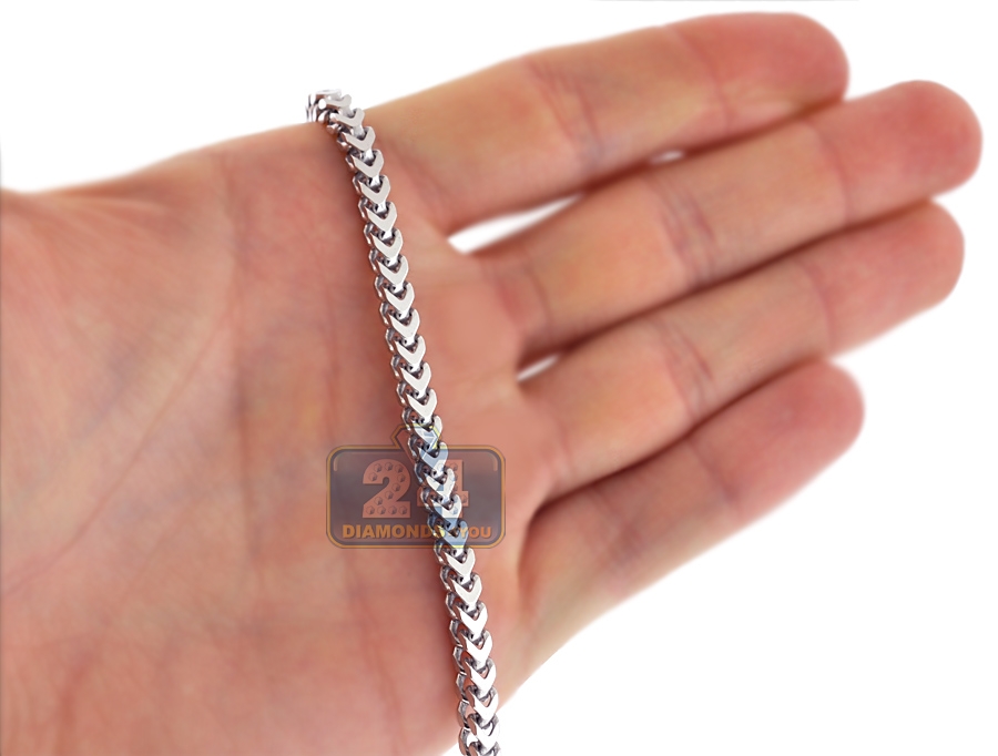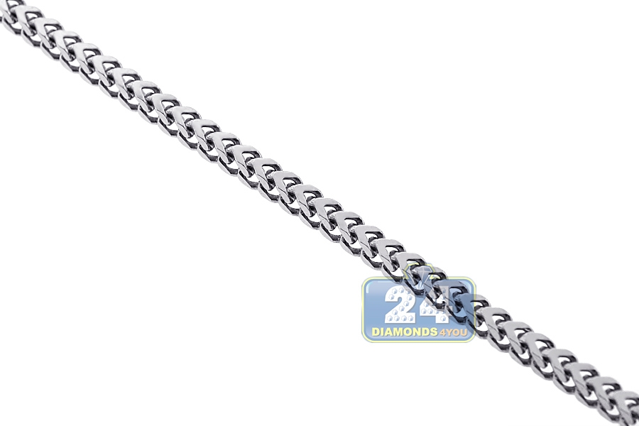 Our franco link chain looks impressively masculine! It is expertly handmade of 925 sterling silver, and covered with white rhodium that helps prevent tarnishing and gives a bright color. The necklace features 4 mm in width, and available in 20, 22, 26, 28 or 30 inches in length; and also secures with a safe lobster claw clasp. Add a handsome detail to your look!