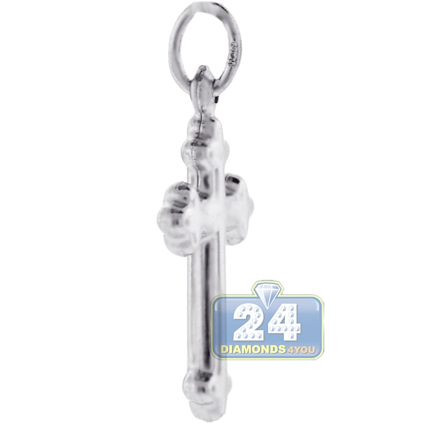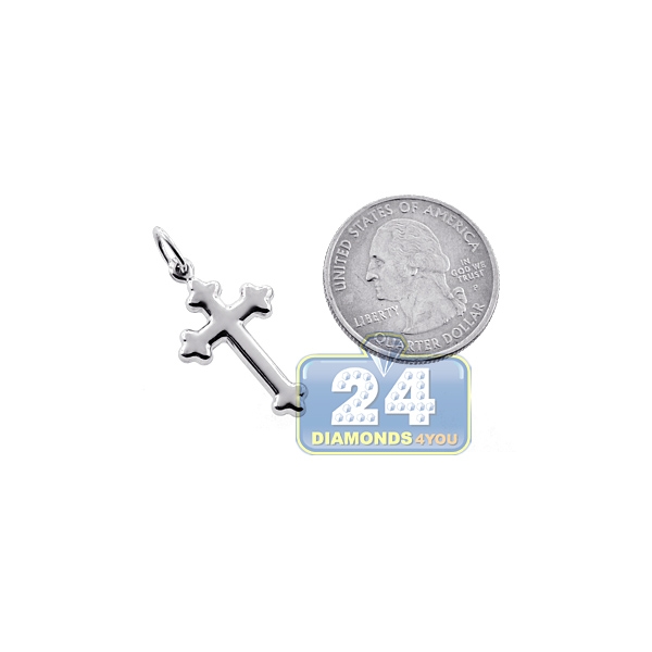 Let your faith shine with with our gothic-style cross pendant! It is masterly handmade of cool 925 sterling silver, and covered with white rhodium that helps prevent tarnishing and gives a bright color. The sterling silver pendant features total length of 32 mm and width of 16 mm. Meaningful addition to your jewelry collection!