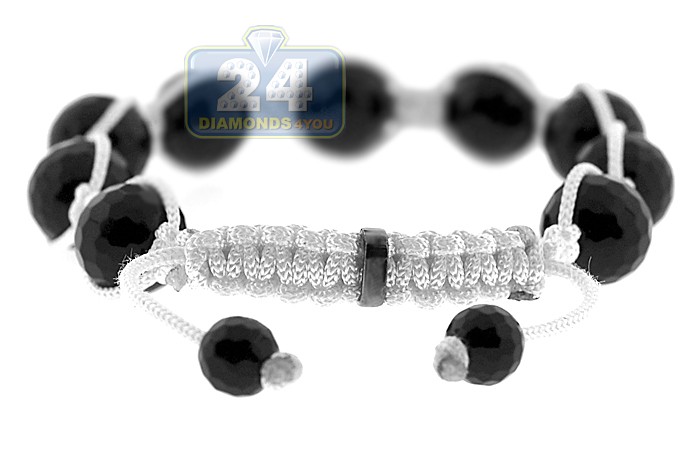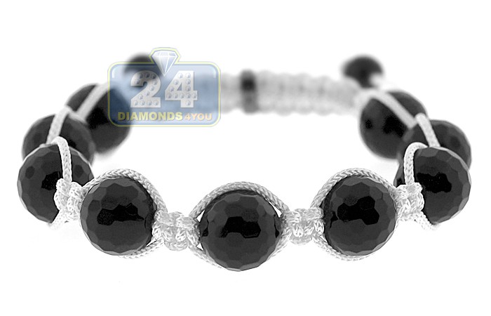 This versatile bead bracelet features faceted stone beads. These gorgeous beads are tied together with a white braided string. Very comfortable and easy pull closure makes this stunning bracelet easy on and off. Stylish and unique at the same time this bracelet is great for everyday wear.