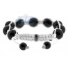 925 Sterling Silver Grooved Black Onyx Bead Adjustable Bracelet