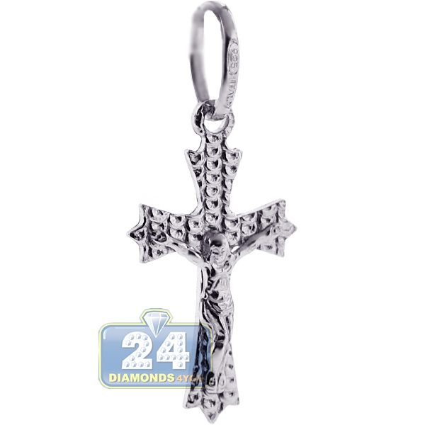 925 Sterling Silver Jesus Christ Diamond Cut Cross Pendant