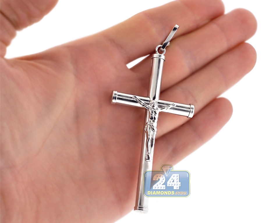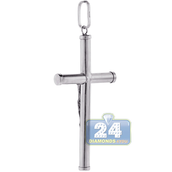 925 Sterling Silver Jesus Christ Large Cross Mens Pendant