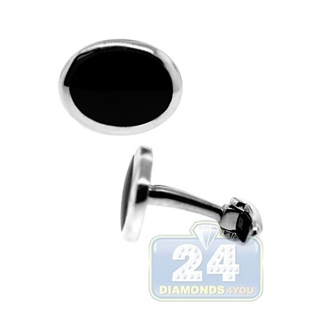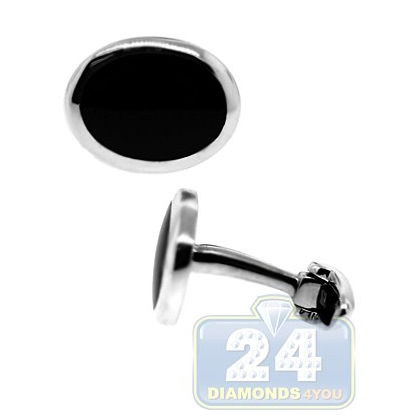 925 Sterling Silver Black Onyx Mens Oval Cuff Links