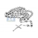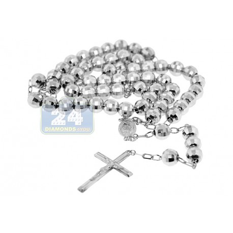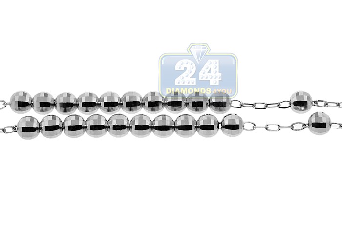 925 Sterling Silver Mens Diamond Cut Rosary Necklace 22 Inches