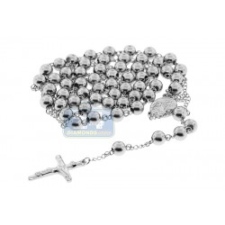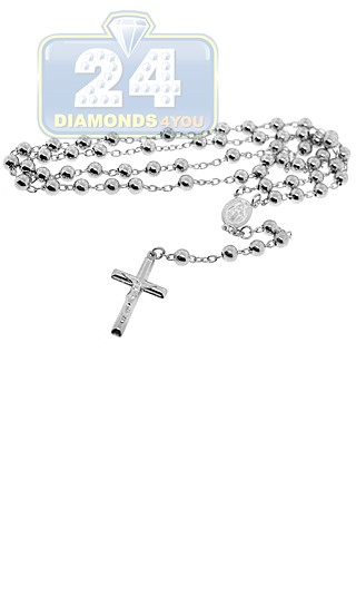 925 Sterling Silver Mens Rosary Necklace 5 mm 19 1/4 Inches