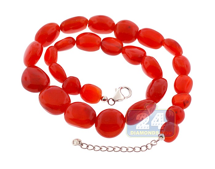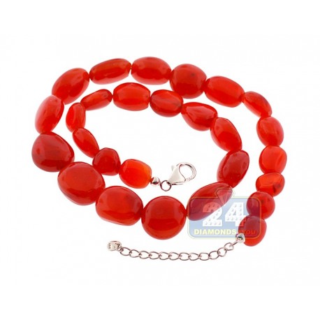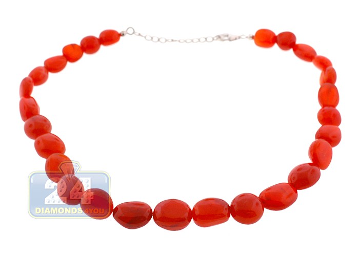 925 Sterling Silver Natural Cornellion Womens Necklace 18 Inches