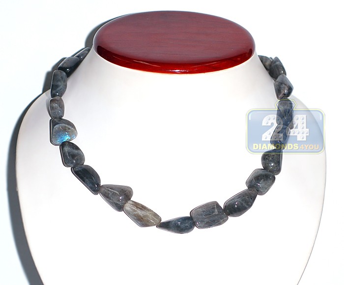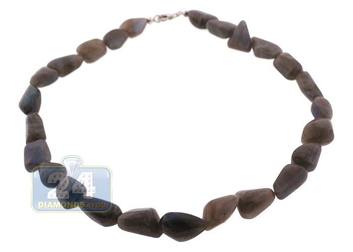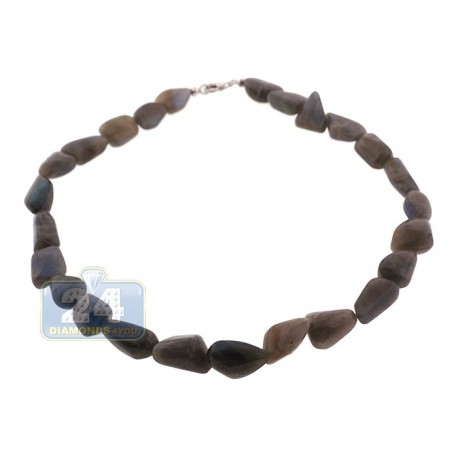 925 Sterling Silver Natural Labradorite Womens Necklace 18 Inches