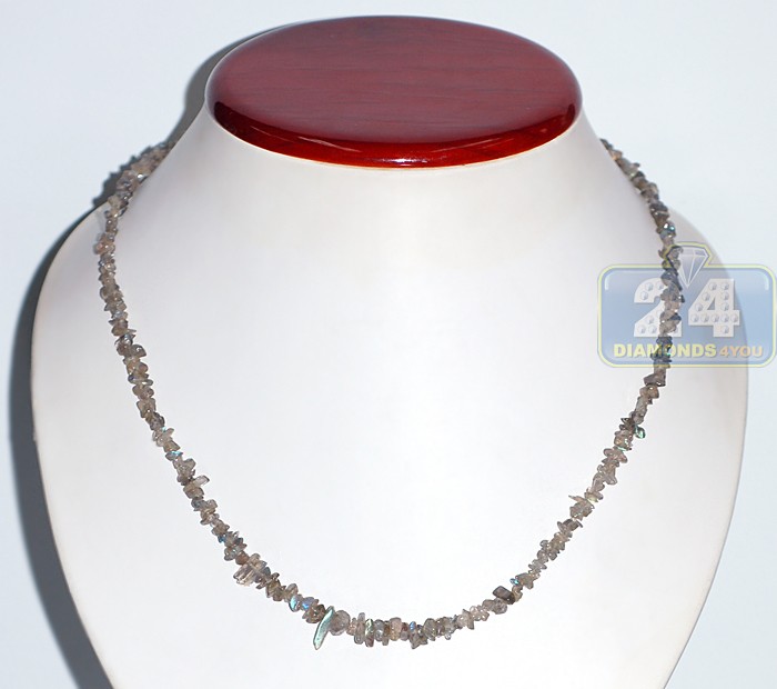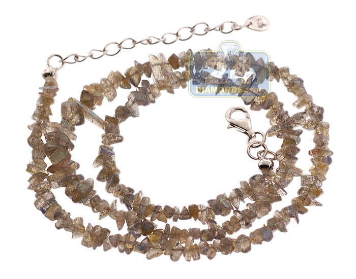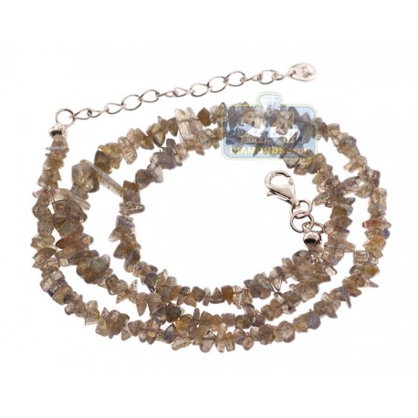 925 Sterling Silver Natural Uncut Labradorite Womens Necklace 18 Inches