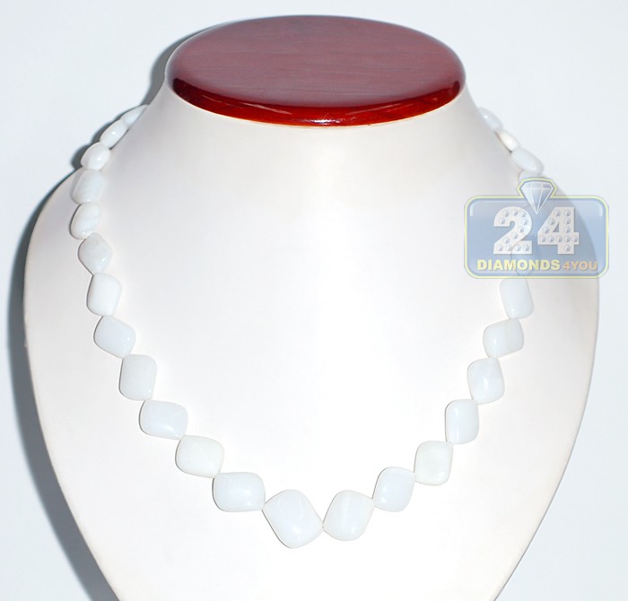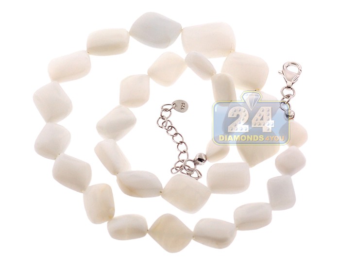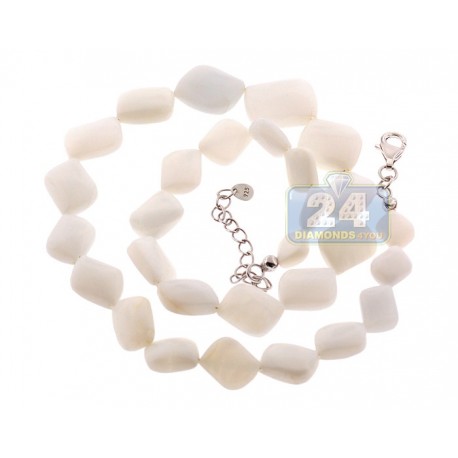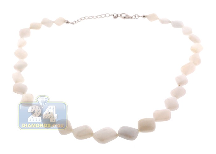 925 Sterling Silver Natural White Opal Womens Necklace 18 Inches